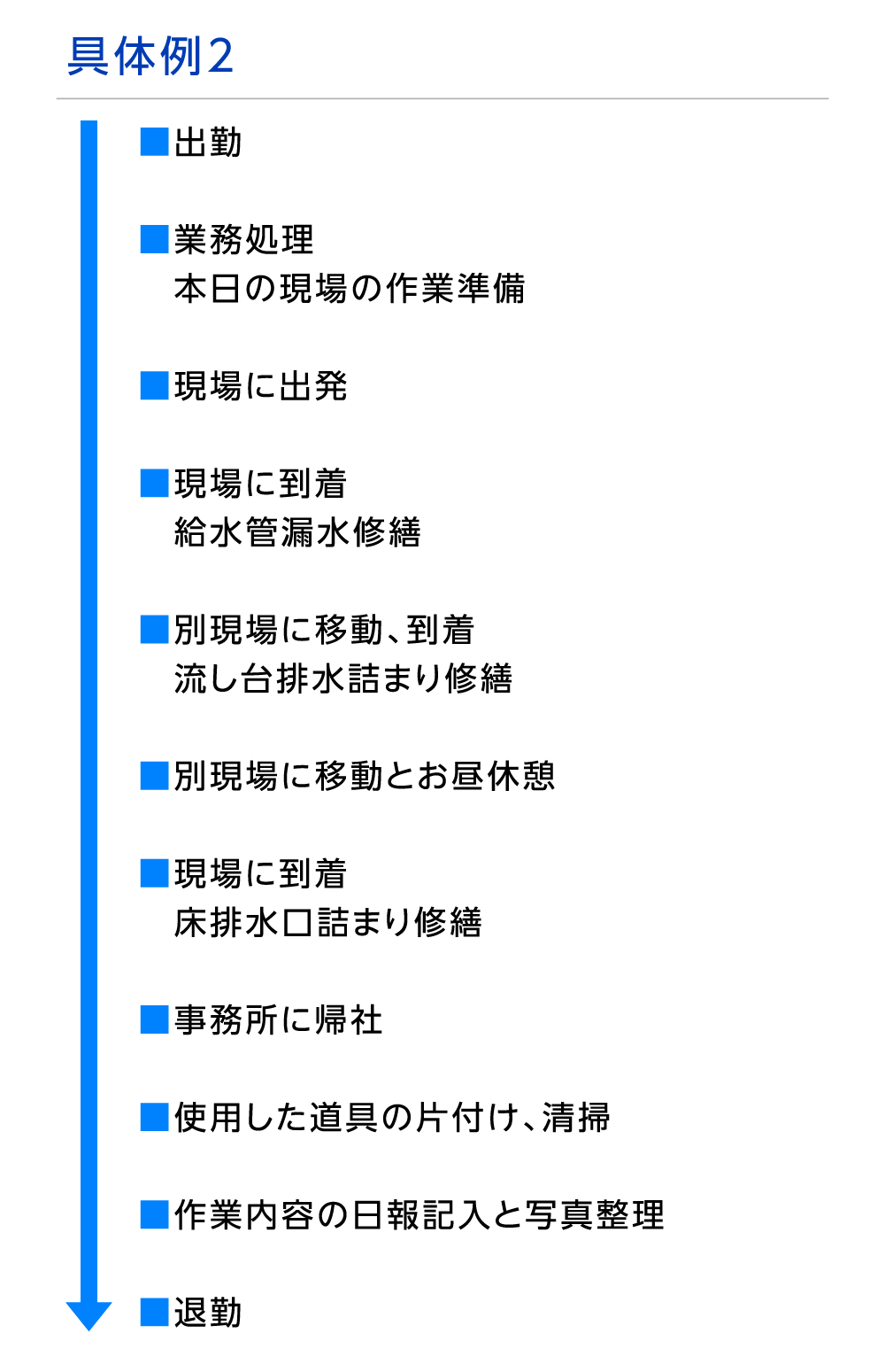 仕事の内容 各現場にて給排水設備の修繕・メンテナンス作業