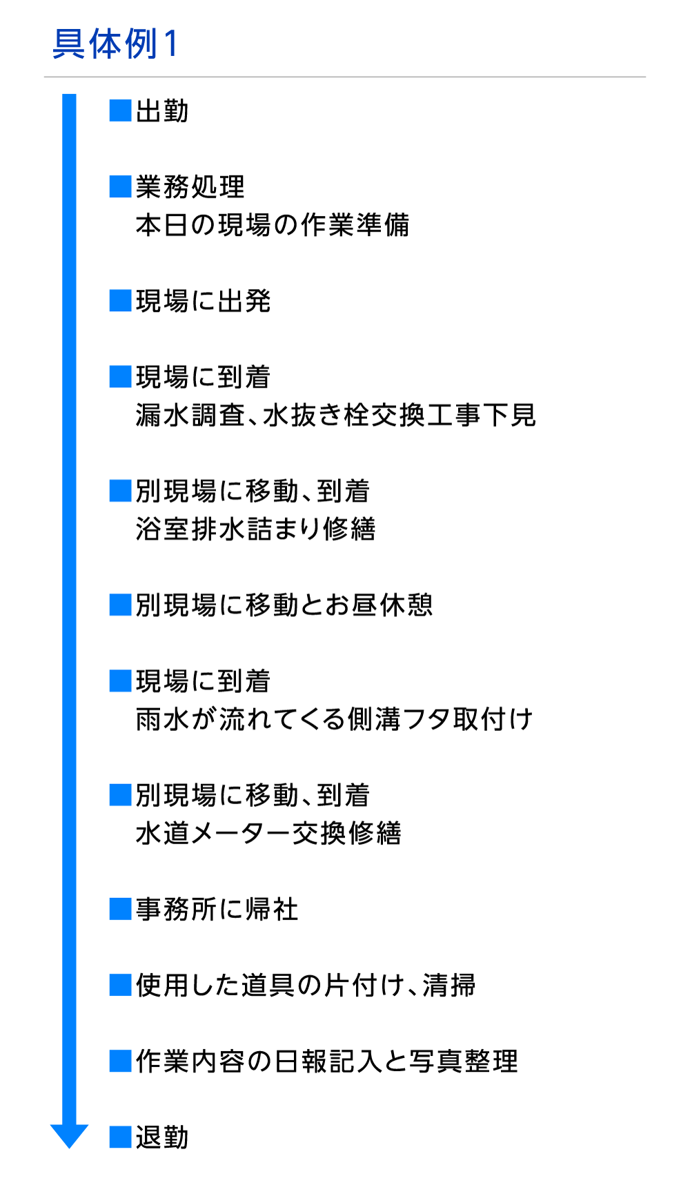 仕事の内容 各現場にて給排水設備の修繕・メンテナンス作業