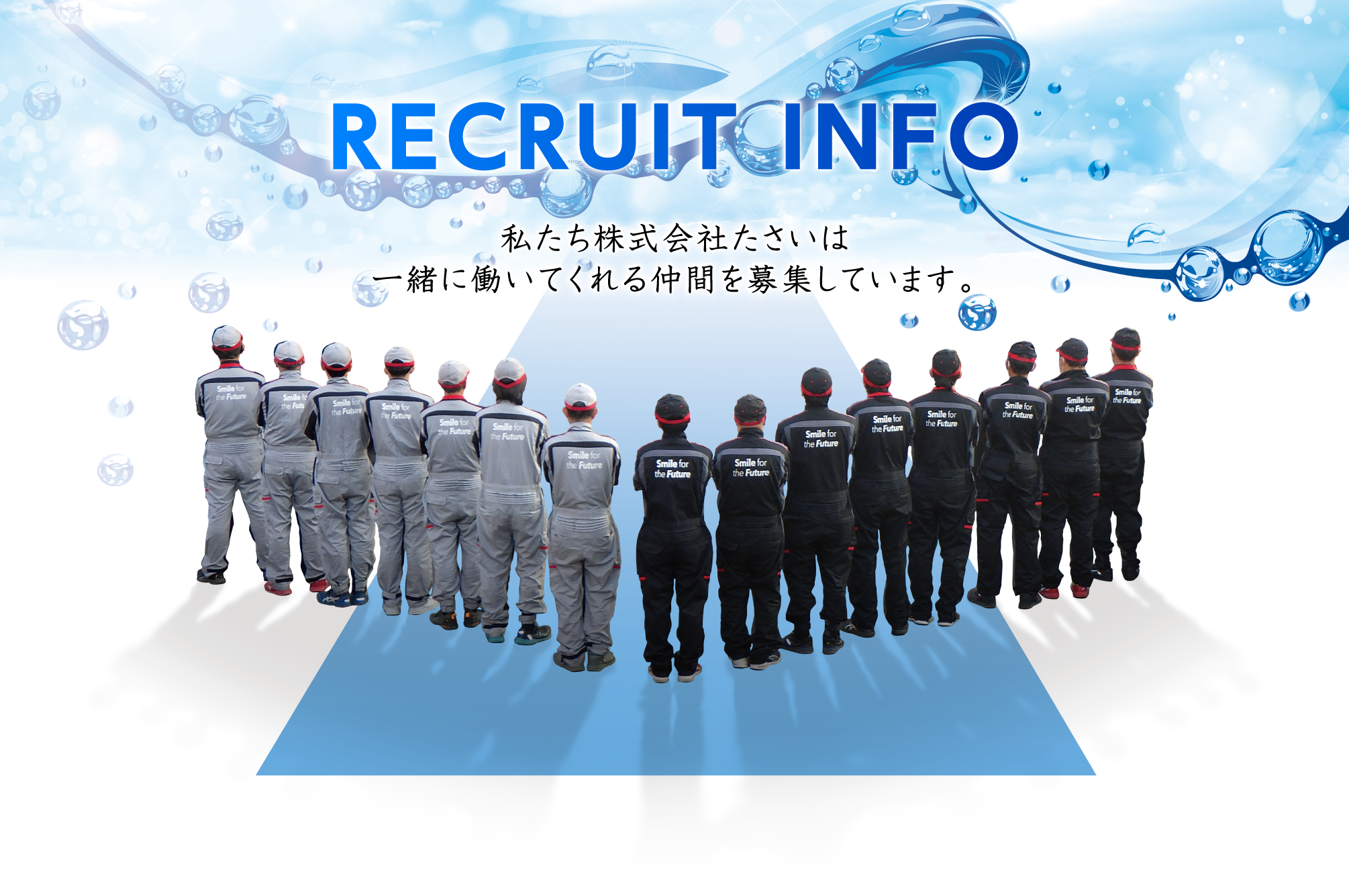 [メッセージ] 基本現場には、2人1組で作業します。毎日メンバーは変わるので先輩や後輩とのコミュニケーションも取れやすく、年齢や入社年次は関係なく、やる気のある方は、たくさん仕事を任せてもらえるので、とてもやりがいがある会社です。始めのうちは、覚える事多く、大変かと思いますが、何事にも興味を持って作業しているといつの間にか身に付いてくる物です。 これから、どんどん大きくなっていく会社だと思っています。一緒に盛り上げて大きくしていきましょう!!
